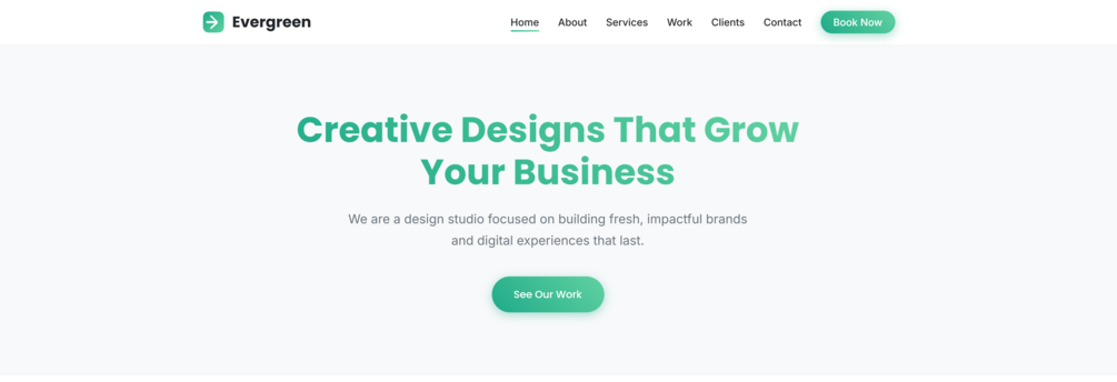 - Call-to-Action (CTA) Section: Strategically placed, this section directly encourages visitors to connect, providing a clear pathway for potential clients to initiate collaboration and explore how Evergreen Designs can contribute to their brand's success.