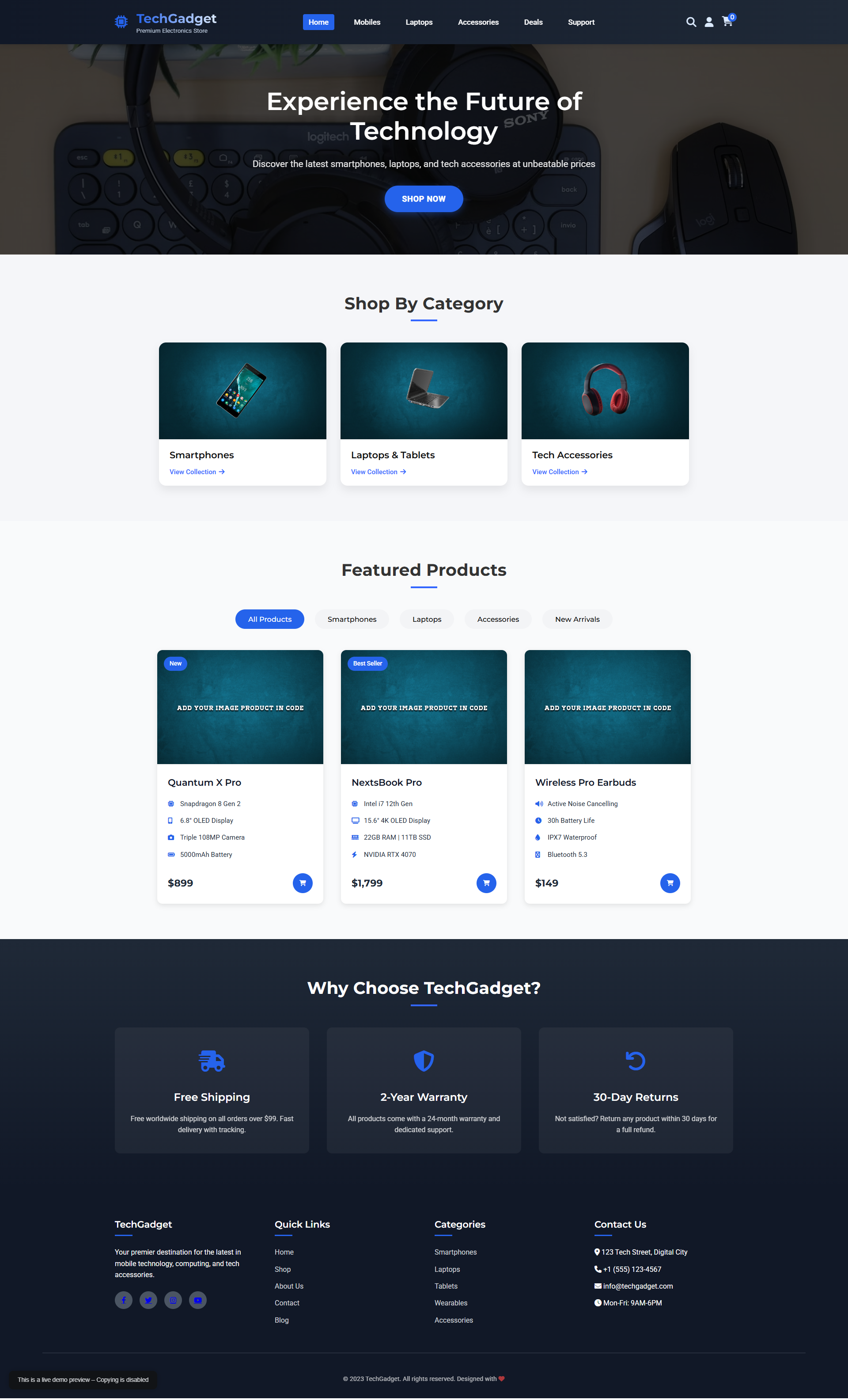 Live DemoLeave us a ReviewTech-Gadget is a premium, high-converting landing page crafted specifically for electronics stores, gadget shops, and tech-focused online brands.